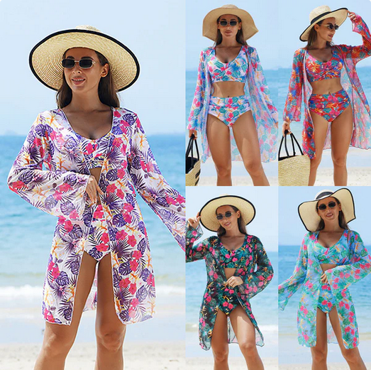 3-PIECE VERSATILITY: This bikini set includes a top, bottom, and stylish cover-up, giving you endless outfit combinations. Whether you're lounging by the pool or hitting the beach, the coordinated pieces allow for effortless transitions from sunbathing to socializing. The cover-up adds a chic layer for when you want extra coverage without sacrificing style.
